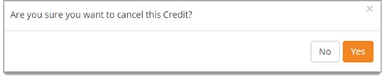 For credits with a status of Submitted for Credit, the Cancel Request for Credit option will be available. Select this action to cancel the invoice and also send a response to your ERP system signalling the cancellation. Once selected, the following confirmation message will display: