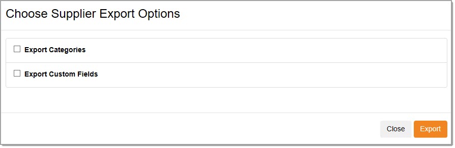 The Choose Supplier Export Options modal window opens:
